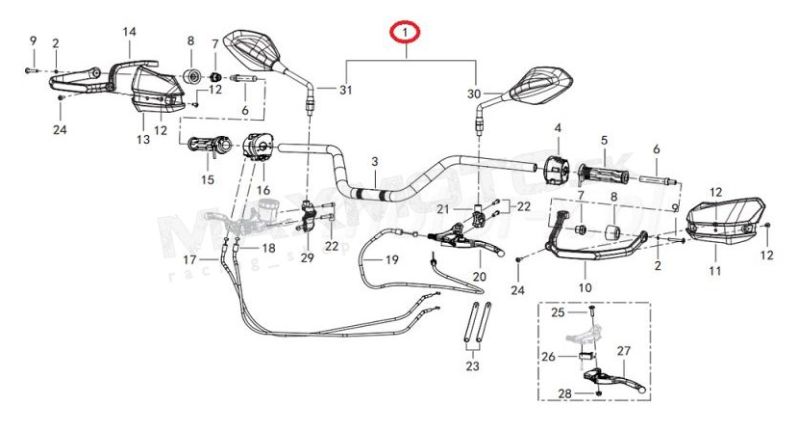 Spätné zrkadlá QJ MOTOR SVT 650, SRT 800, SFA 600/ 1000, 40440P160100