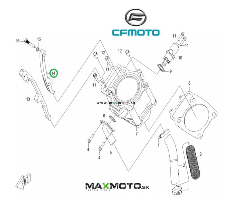 Vodítko rozvodovej reťaze CF MOTO Gladiator X450/ X520/ X550/ X600/ X625, 0GR0-023200