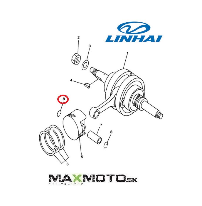 Zámok piestu určený pre štvorkolky LINHAI 400, číslo originálneho dielu: 27239.