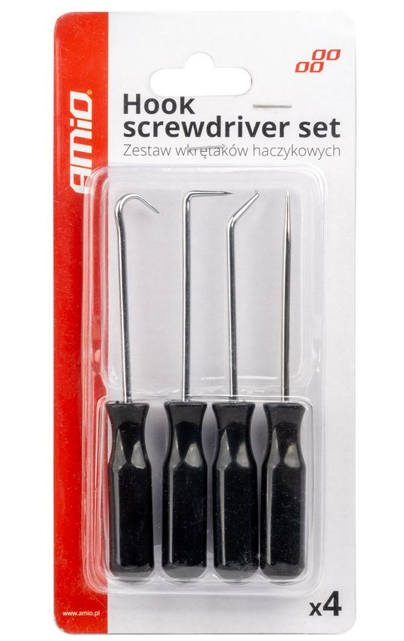 - 4 rôzne hroty: rovné, zakrivené, 90° a háčikové – ideálne pre mnohé aplikácie, ako je páčenie, ťahanie alebo manipulácia s malými dielmi