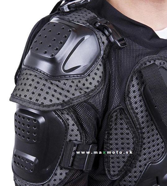 Koerta ochráni vrchnú časť tela - chrbticový chránič (korytnačka), zapracovaný obličkový pás, chrániče ramien a lakťov, predný hrudníkový chránič. Chrániče sú všité do poddajnej sieťovej tkaniny. Lakťové a ramenné chrániče je pomocou sťahovacích pásov/gumičiek možné nastaviť podľa potreby.
