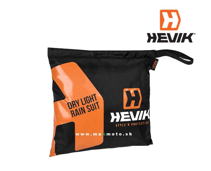 Nepremokavý dvojdielny komplet HEVIK v praktickom vrecku ochráni pred dážďom aj vetrom.
