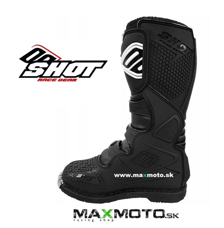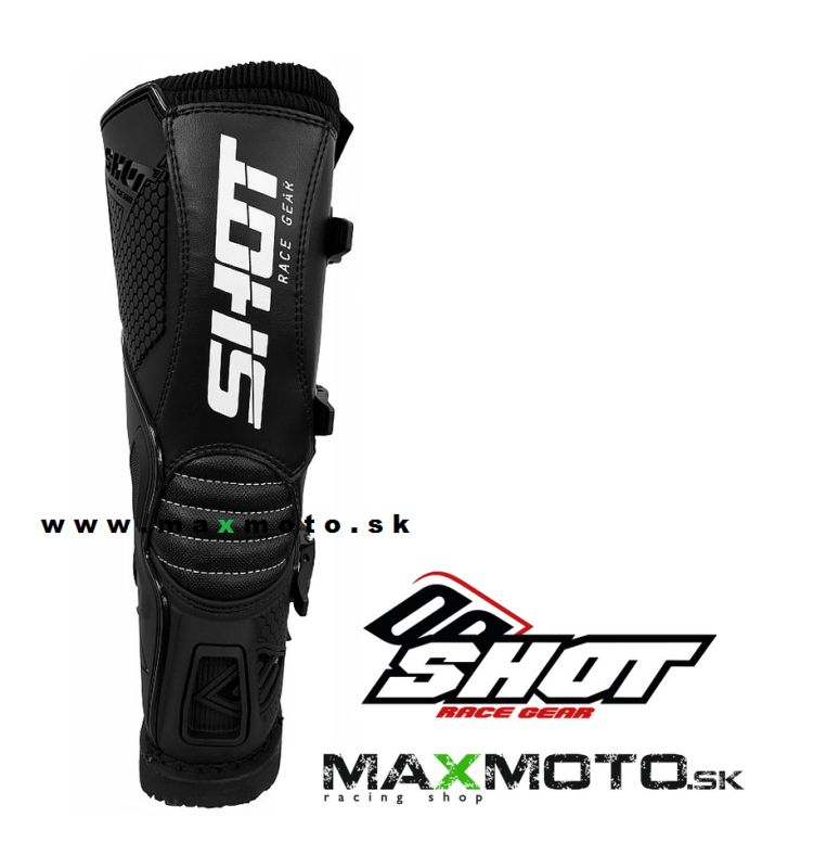 Čižmy obľúbenej značky SHOT RACING model X10 zo syntetickej kože a s plastovým chráničom predkolenia.