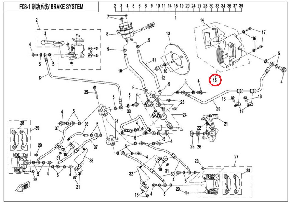 Brzdový strmeň zadný CF MOTO X450, X520, 9GQS-081300