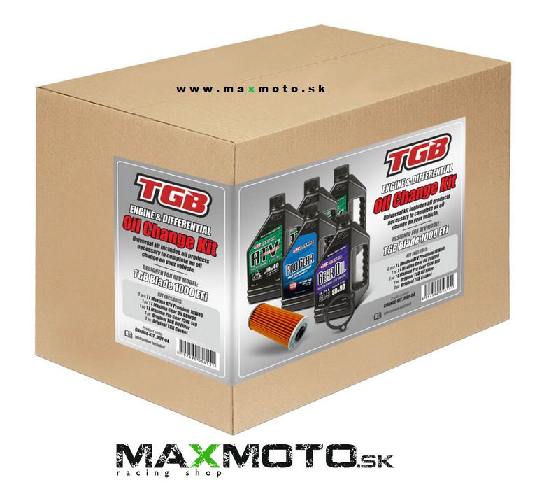 Sada na kompletnú výmenu olejov pre štvorkolky TGB Blade 1000 EFI vrátane motorového oleja, oleja do prevodovky, oleja do diferenciálu, filtra, tesnenia a návodu s postupom.