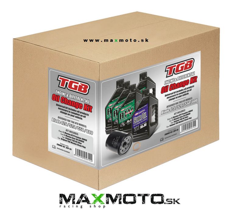 Sada na kompletnú výmenu olejov pre štvorkolky TGB Target + Blade 425, 525, 550, 600 vrátane motorového oleja, oleja do diferenciálu, filtra, tesnenia výpustnej skrutky a návodu s postupom.