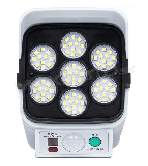 LED solárna lampa s PIR senzorom na osvetlenie budov, vchodov, vstupných brán atď. Lampa je dodávana s diaľkovým ovládaním a držiakom.