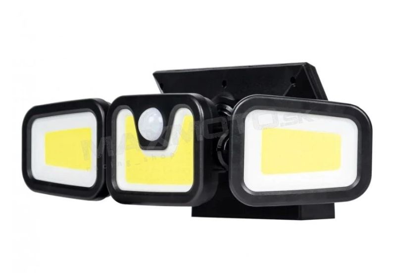 LED solárna lampa s 3-mi samostatnými svetlami a PIR pohybovým senzorom na osvetlenie vonkajších priestorov v okolí budovy, záhrady, terasy atp.