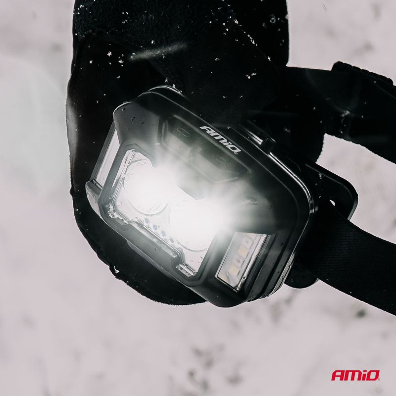 Čelové LED svietidlo so silným svetlom od výrobcu AMIO. Ideálna na turistiku, dielenské práce, bicyklovanie, survival a núdzové použitie.