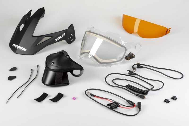 Elektrický výhrev plexi prilieb CASSIDA Tour - sada, číre plexi/ oranžová antifog clona