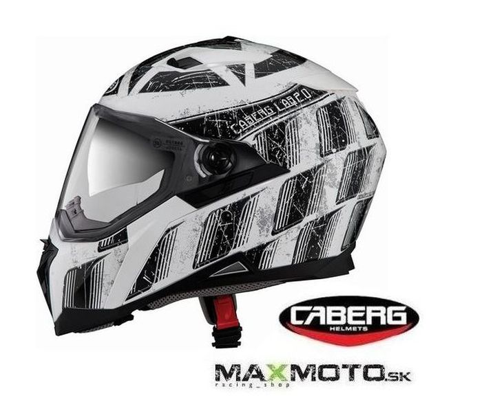 Integrálna cestná prilba CABERG - vyrobená z vysoko odolného a bezpečného termoplastového polykarbonátu, testovaná v aerodynamickom tuneli, podrobené testom SHARP, homologizácia ECE22.05. Odvetrávací systém privádza čerstvý vzduch - predný vetrací systém pre efektívne odmlženie plexi, ventilácia vo vrchnej časti prilby pre lepšiu recykláciu vzduchu, bradový a nosný deflektor. Vnútro prilby je hypoalergénne, komfortné a priedušné - vyberateľné a prateľné. Prilba je vybavená slnečnou clonou s úpravou proti poškriabaniu. Zapínanie pomocou mikrospony, dodávaná s čírym plexi. Súčasťou balenia vak na prilbu.